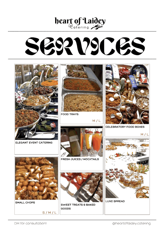 With years of industry experience, we bring a wealth of knowledge and expertise to every event we cater. Our hands-on experience in preparing meals for diverse events, hosting gatherings, and serving a wide range of clients has honed our skills and refined our approach to creating unforgettable dining experiences. Our dedication to developing signature Ghanaian-fusion dishes and our background in hospitality and customer service roles ensure that we deliver exceptional service and culinary innovation with every dish we serve. Trust Heart of Laidey Catering to bring passion, experience, and creativity to your next event, making it a truly memorable and delicious occasion.